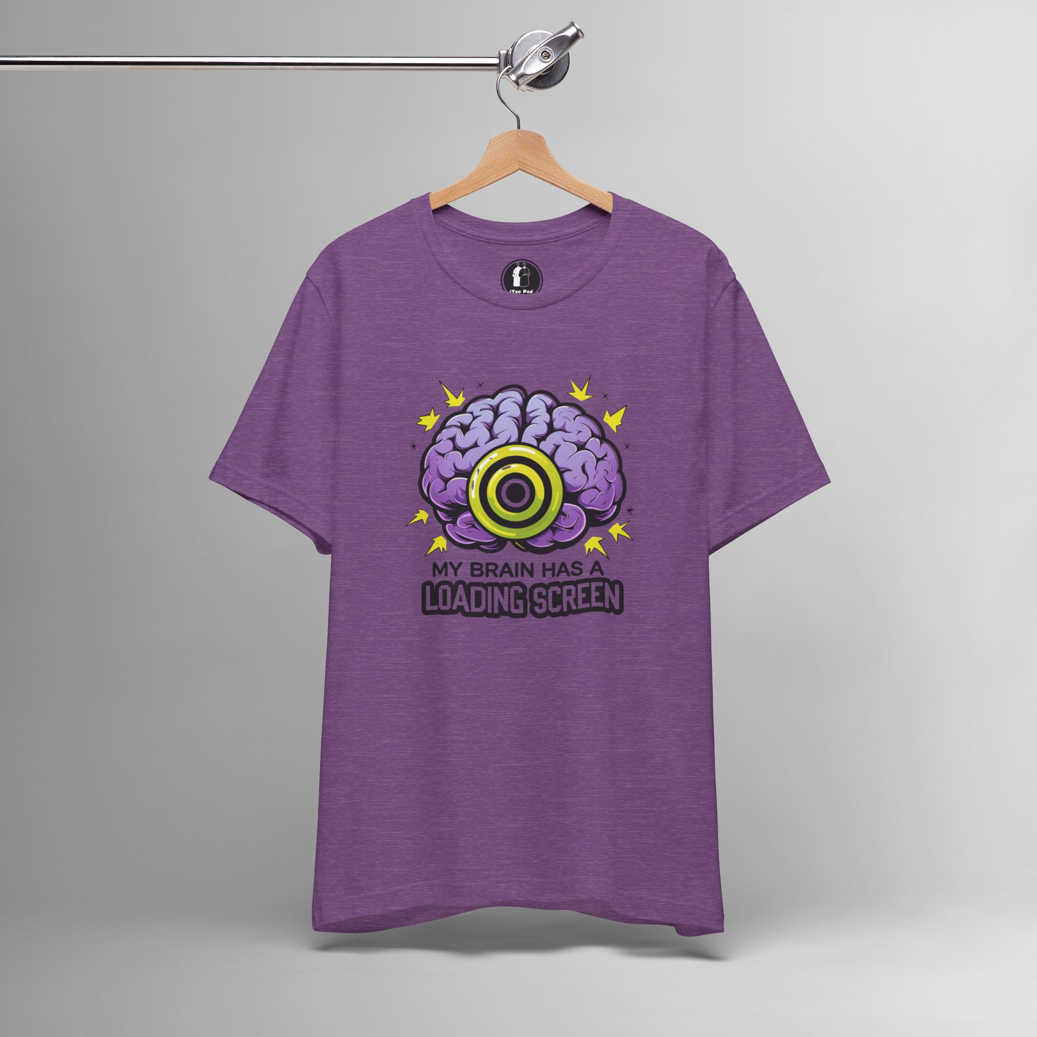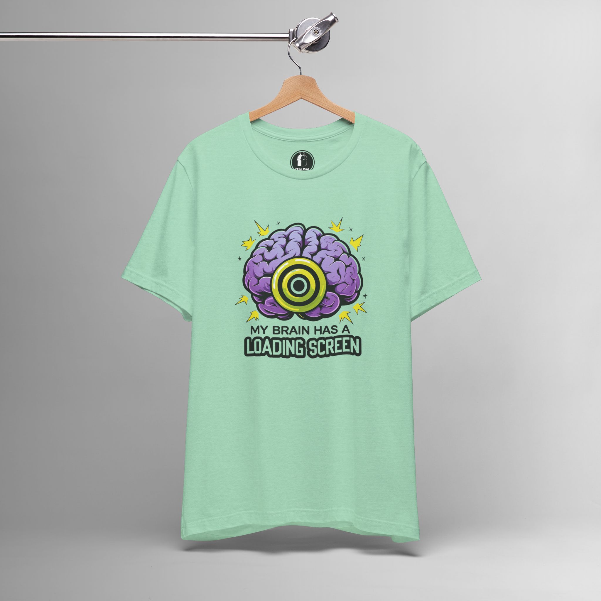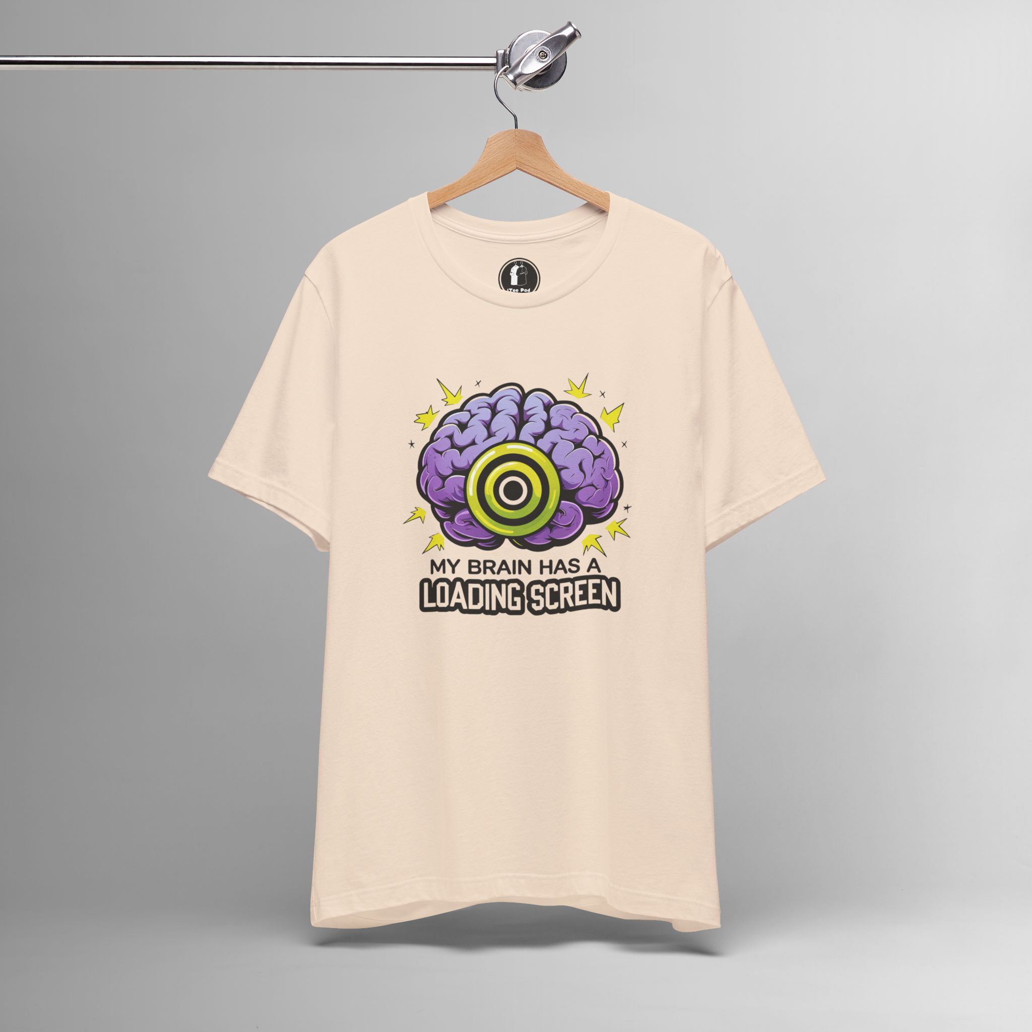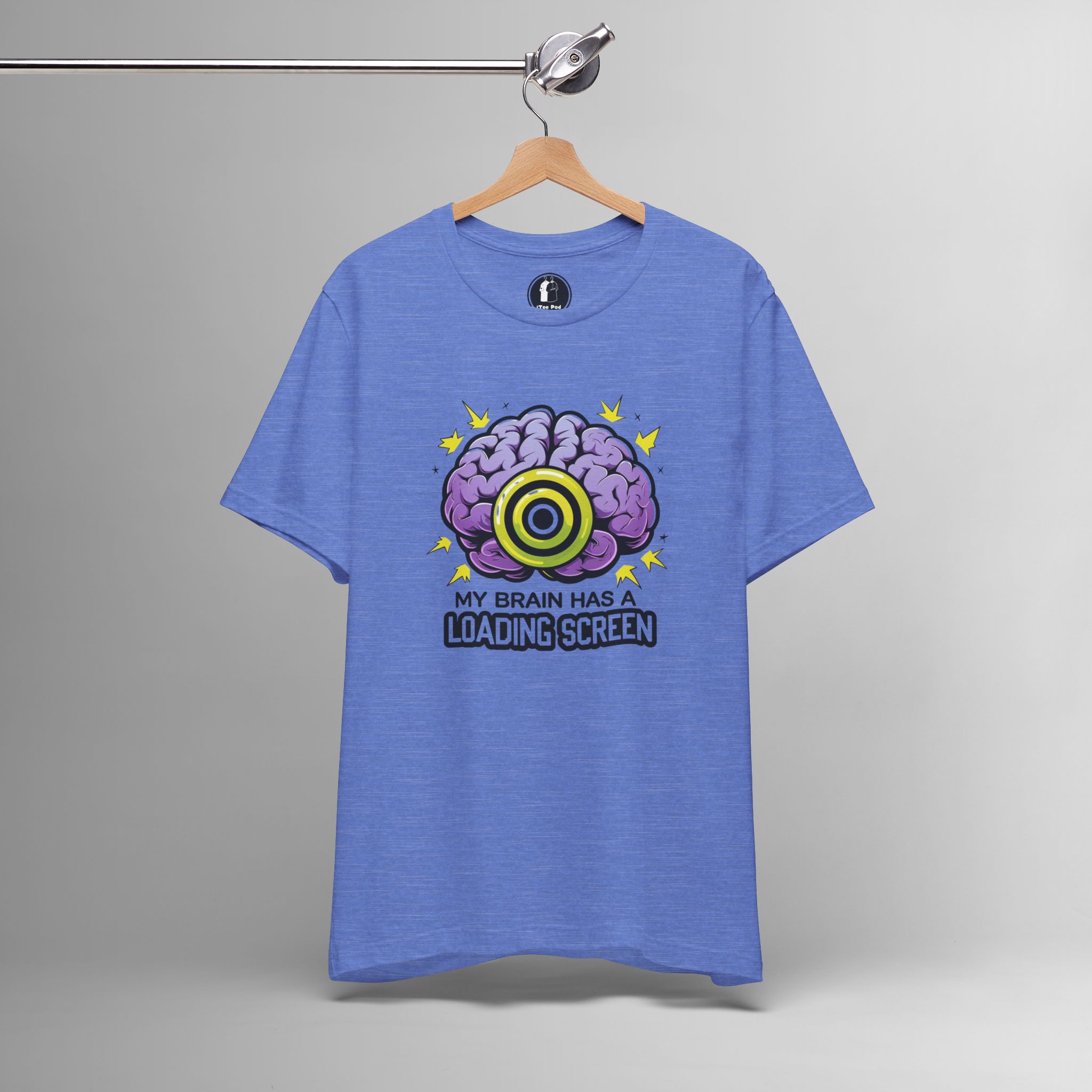 This My Brain Has a Loading Screen T-Shirt is a funny tech tee with a digital humor twist, perfect for those with ADHD. It gives off a playful and lighthearted vibe, making it a great addition to your casual wardrobe. Ideal for tech enthusiasts and those who appreciate witty graphic tees. Perfect for wearing on casual days or as a conversation starter at tech events or gatherings.