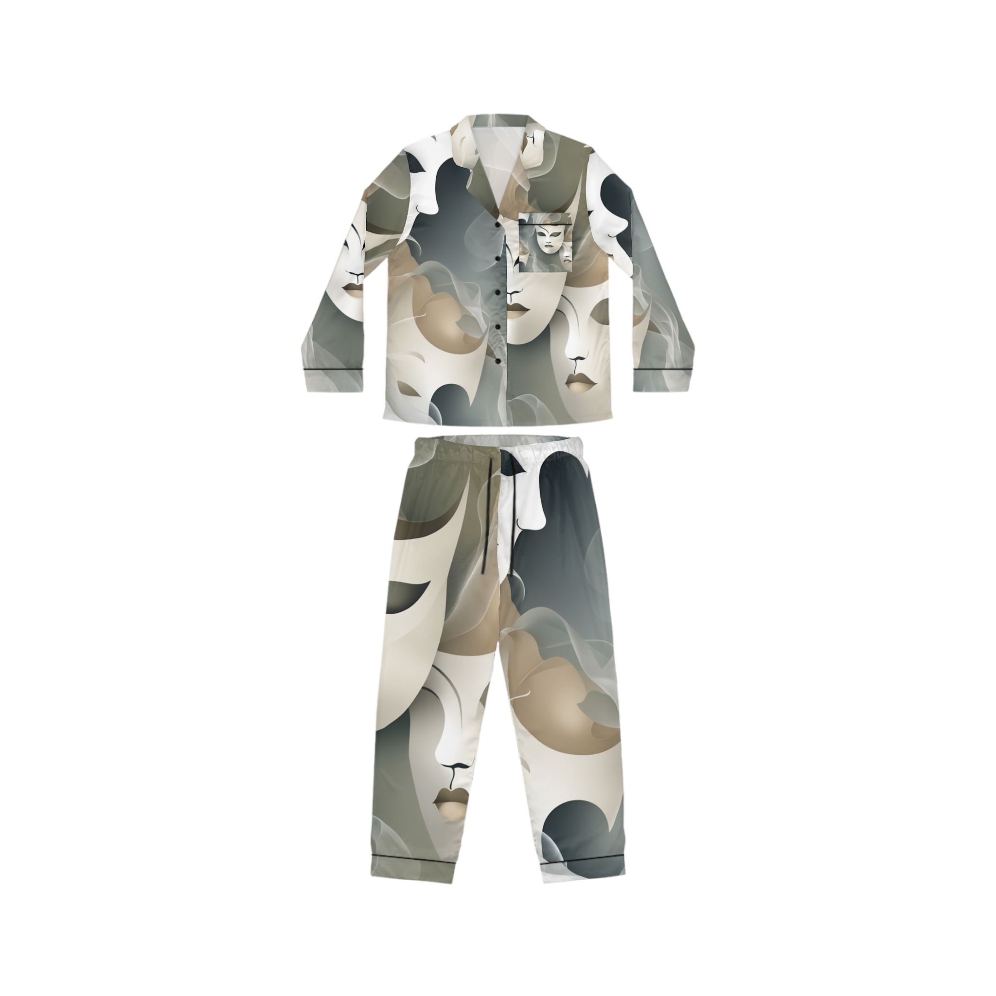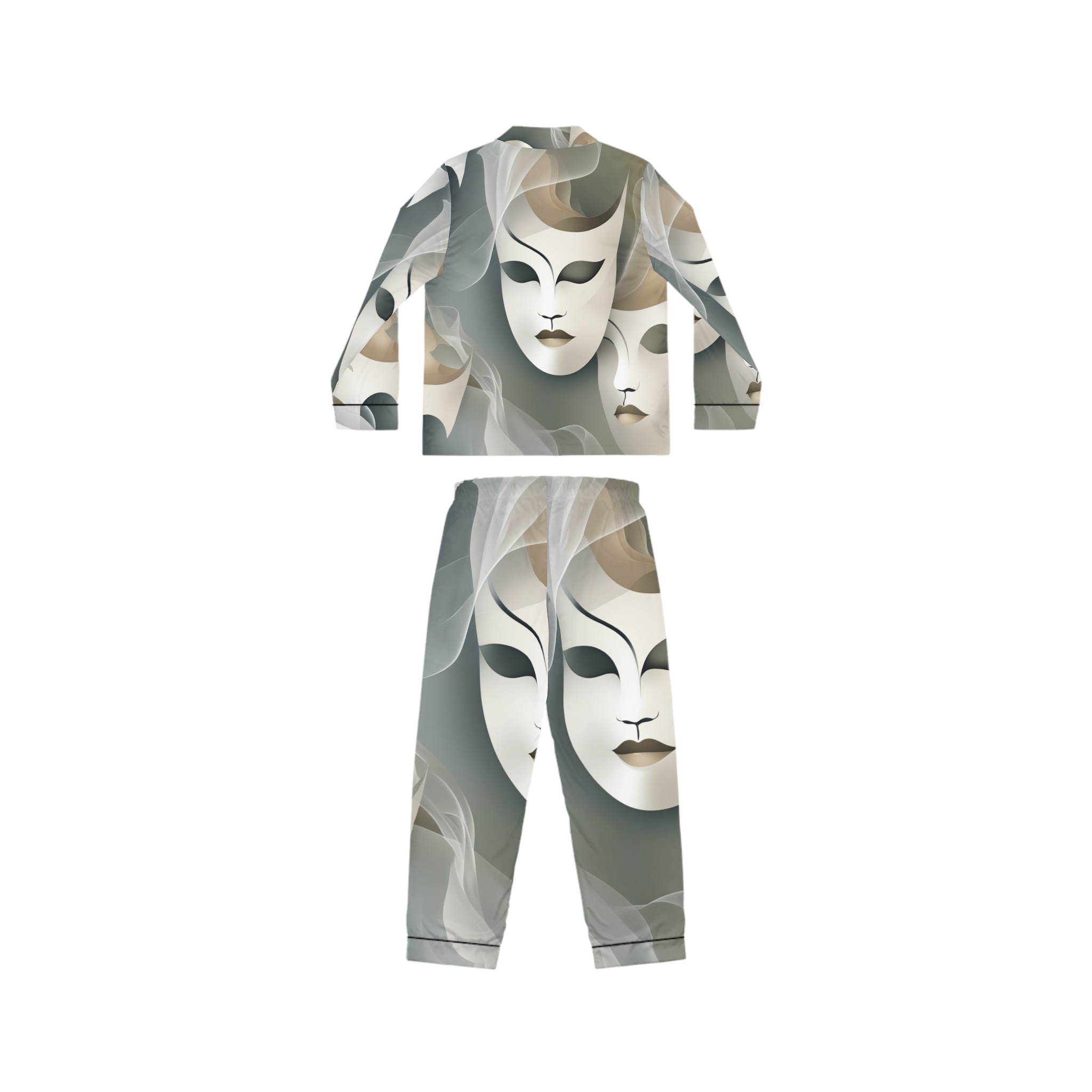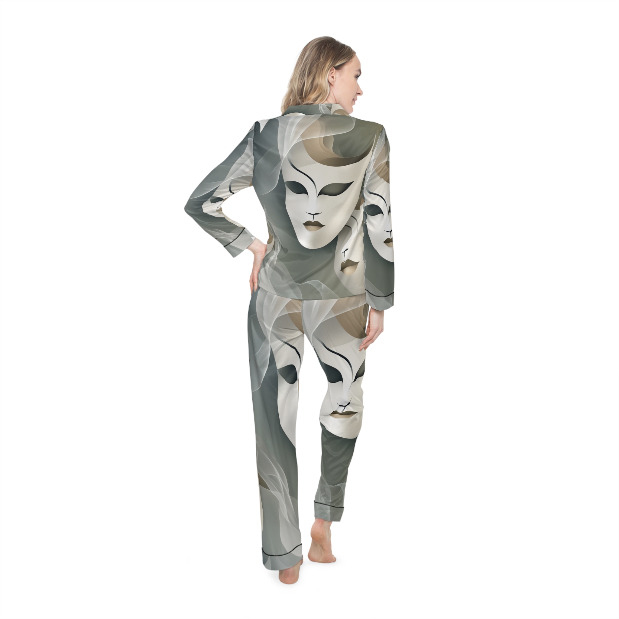 Stay stylish and comfortable in this Women’s Satin Pajama Set featuring a unique Mask Off design. Perfect for lounging at home or getting a good night’s sleep, this pajama set is soft to the touch and has a luxurious satiny texture. The drawstring waist allows for a perfect fit, while the notch lapel collar adds a classic touch to your loungewear. Made from 95% satin polyester and 5% spandex, this set is lightweight and ideal for leisure or nighttime wear. The seam thread color matches closely to the design, and the trim, drawstrings, and buttons are all available in black.
