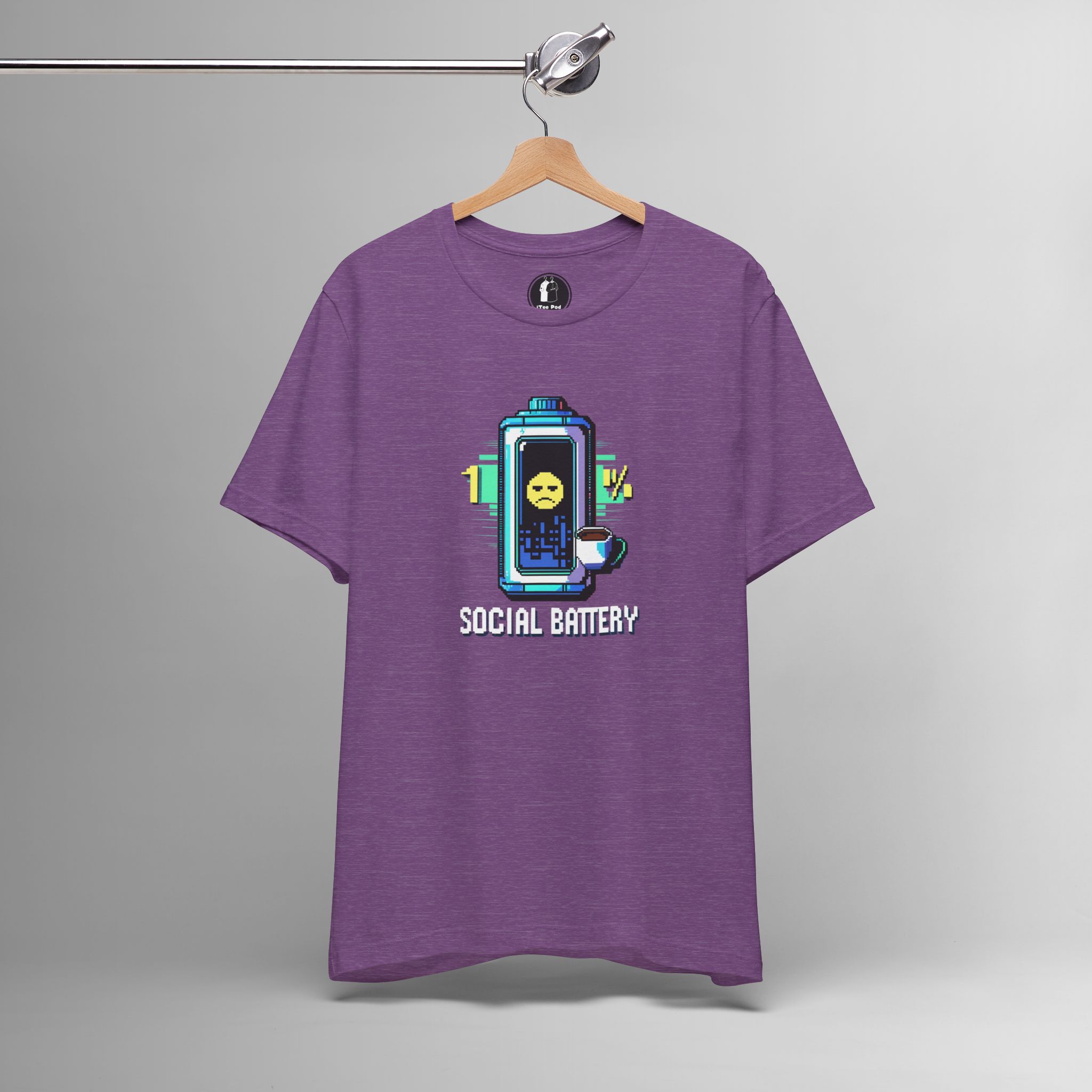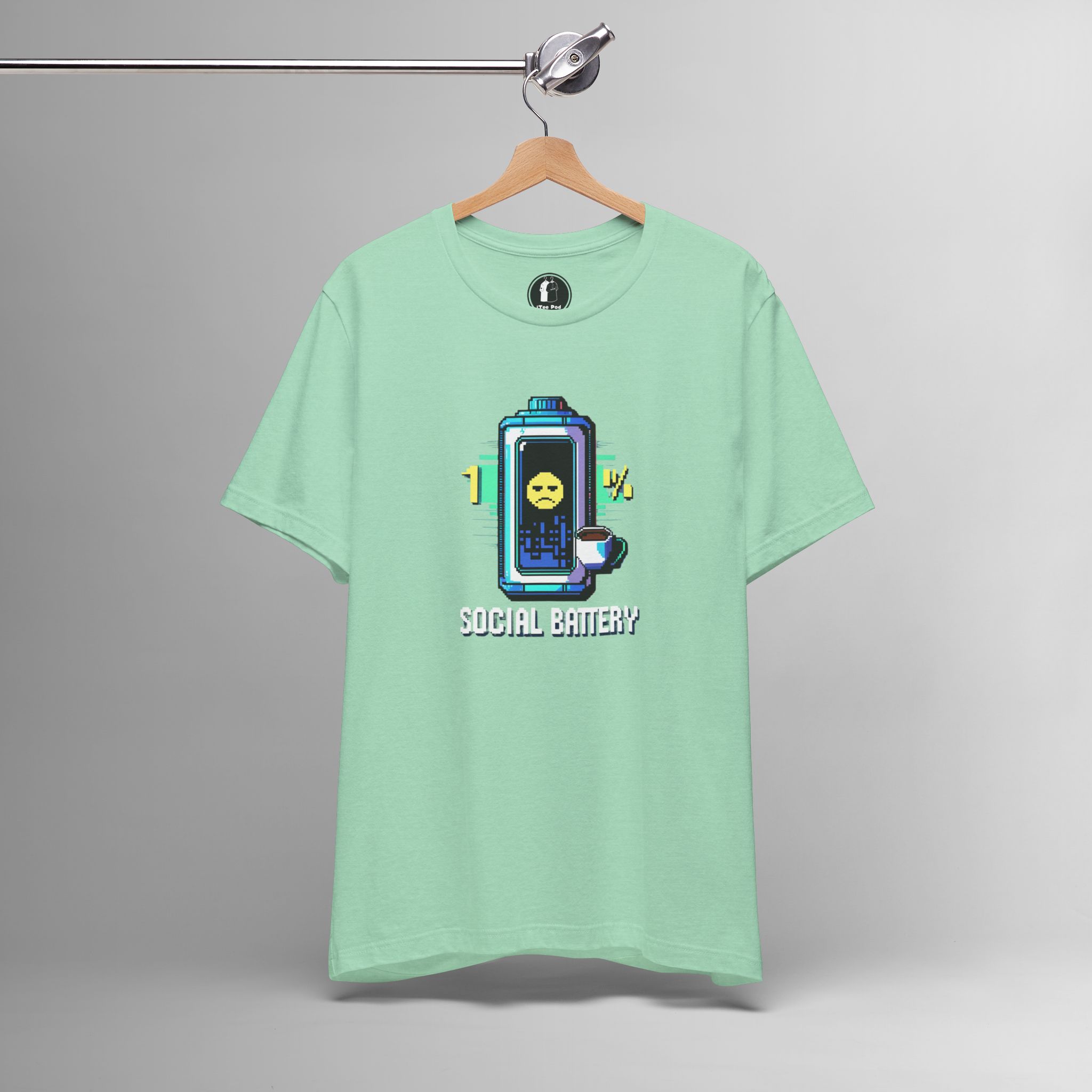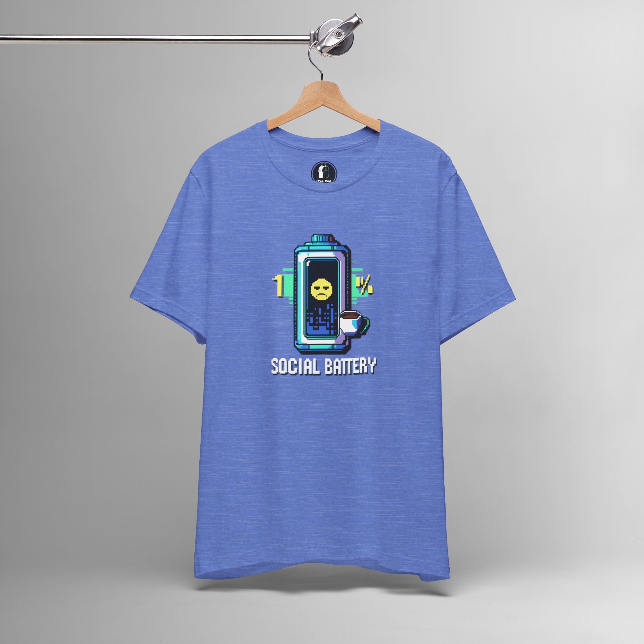 This Social Battery 1% T-Shirt is perfect for introverts and promotes mental health awareness. It gives off a cozy and casual vibe, making it ideal for everyday wear or lounging at home. This shirt is relevant for individuals who value alone time and need to recharge their social battery. It is suitable for occasions like Mental Health Awareness Month and World Introvert Day.