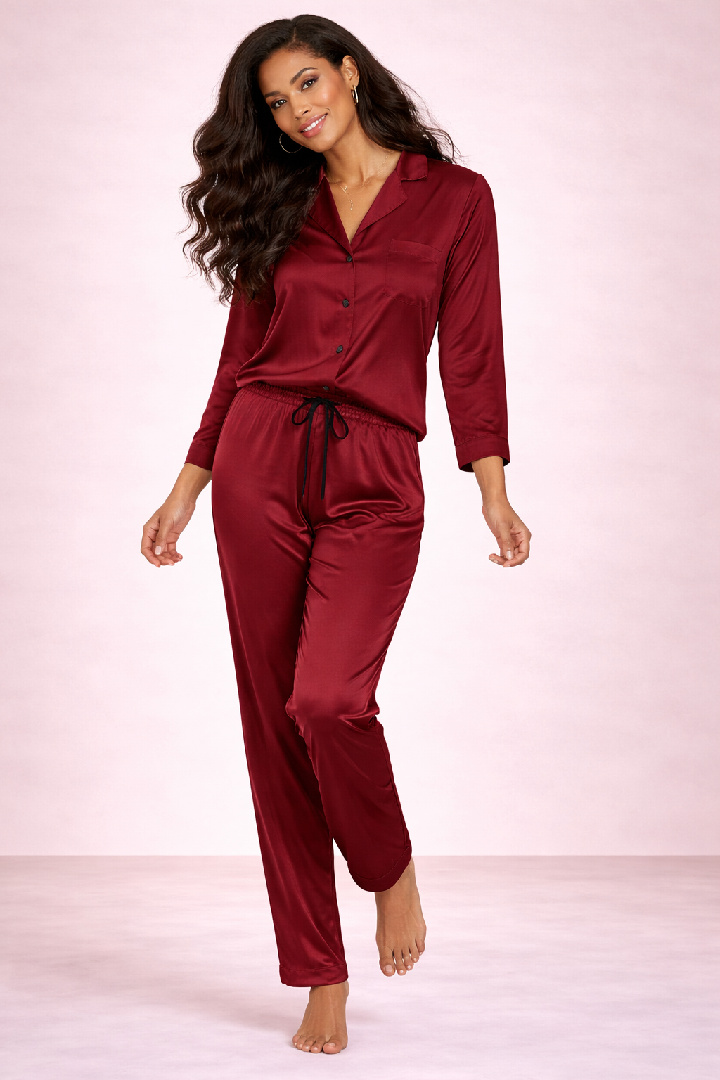 Slide into quiet luxury with these satin pajamas designed for evenings that linger. Lightweight and silky against the skin, the set moves with you—breathable, smooth, and gently fitted where it matters. The notch lapel and contrast trim give a timeless lounge silhouette while the drawstring waist lets you tune the fit for sleep or slow mornings. Wear them for candlelit reading sessions, slow weekend coffee, or when you want to feel composed and comfortable at home.